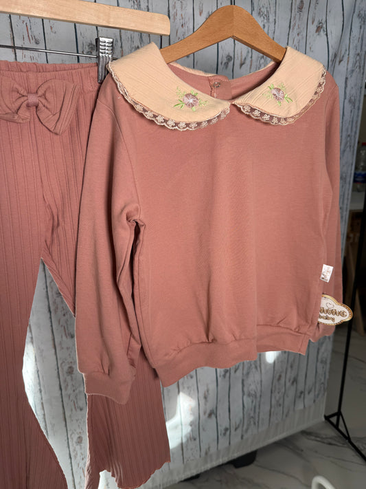 Smagus džemperio su kaspinėliu ir kelnių komplektas
