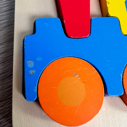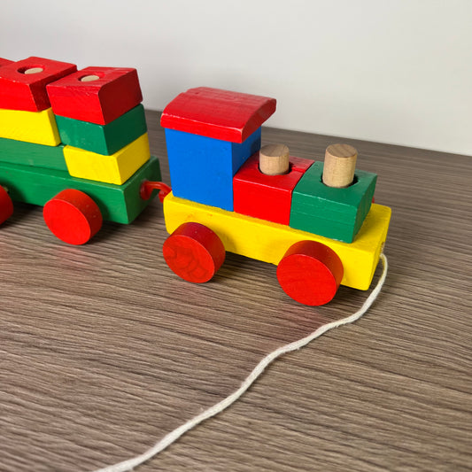 Medinis ryškus, spalvotas traukinukas