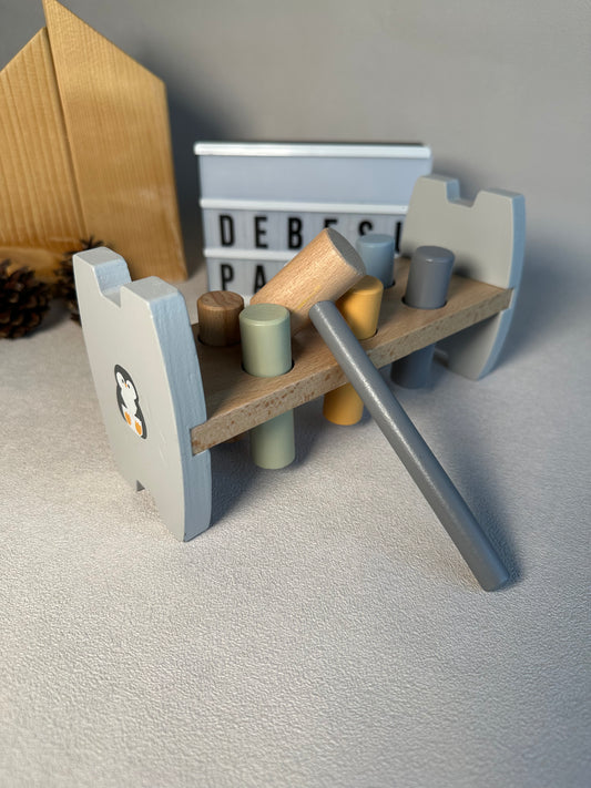 🔨 Medinis kalimo žaislas su pingviniuku (nuo 18 mėn.)