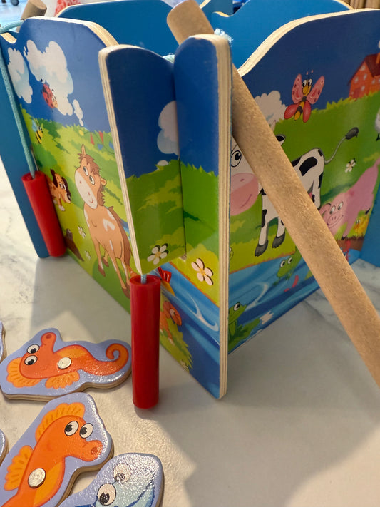 🧲 Medinis magnetinis žvejybinis rinkinys „Mažųjų žvejų ūkis“