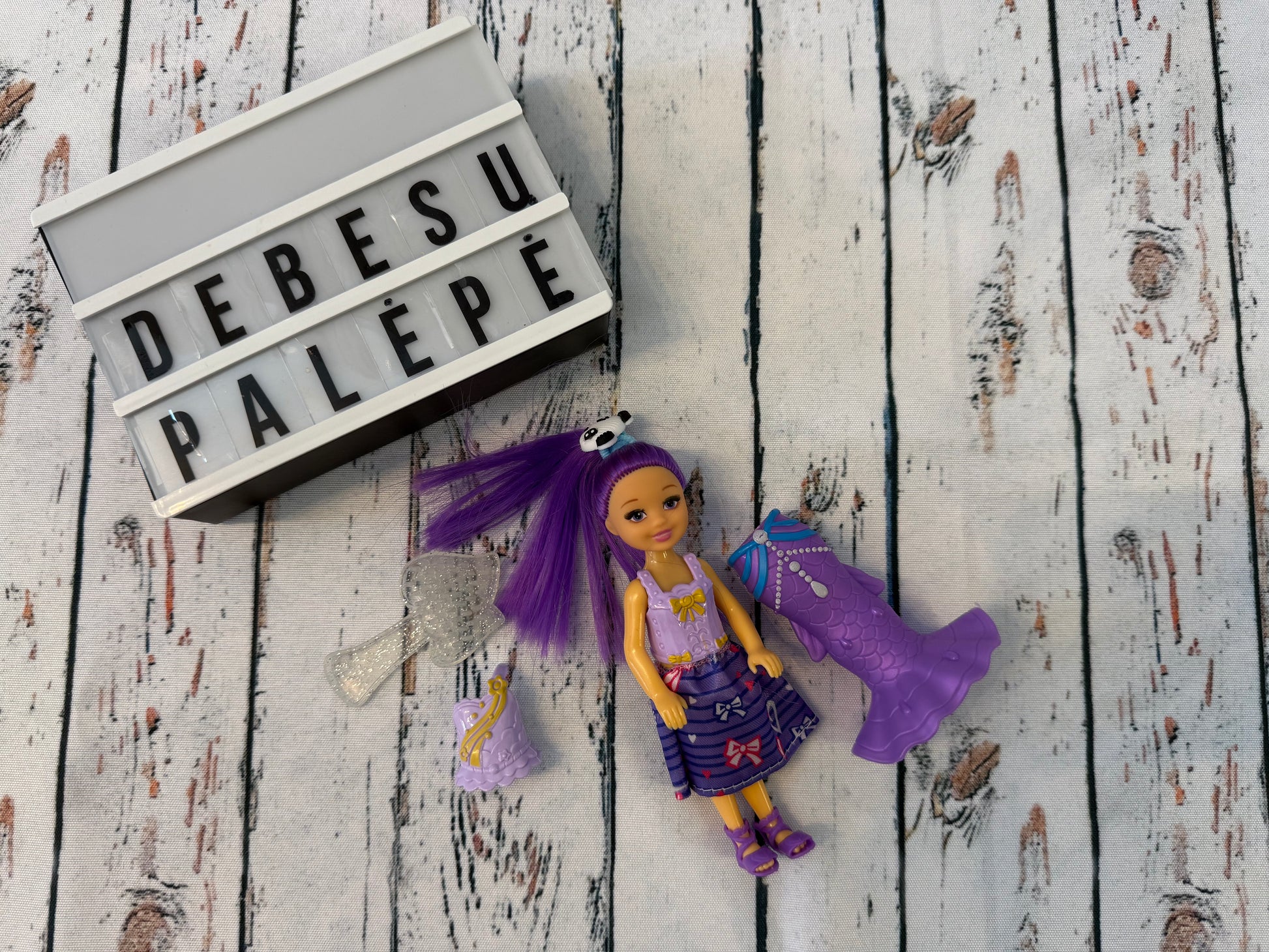 🧜♀️ Violetinė fėjos / undinėlės lėlytė su priedais