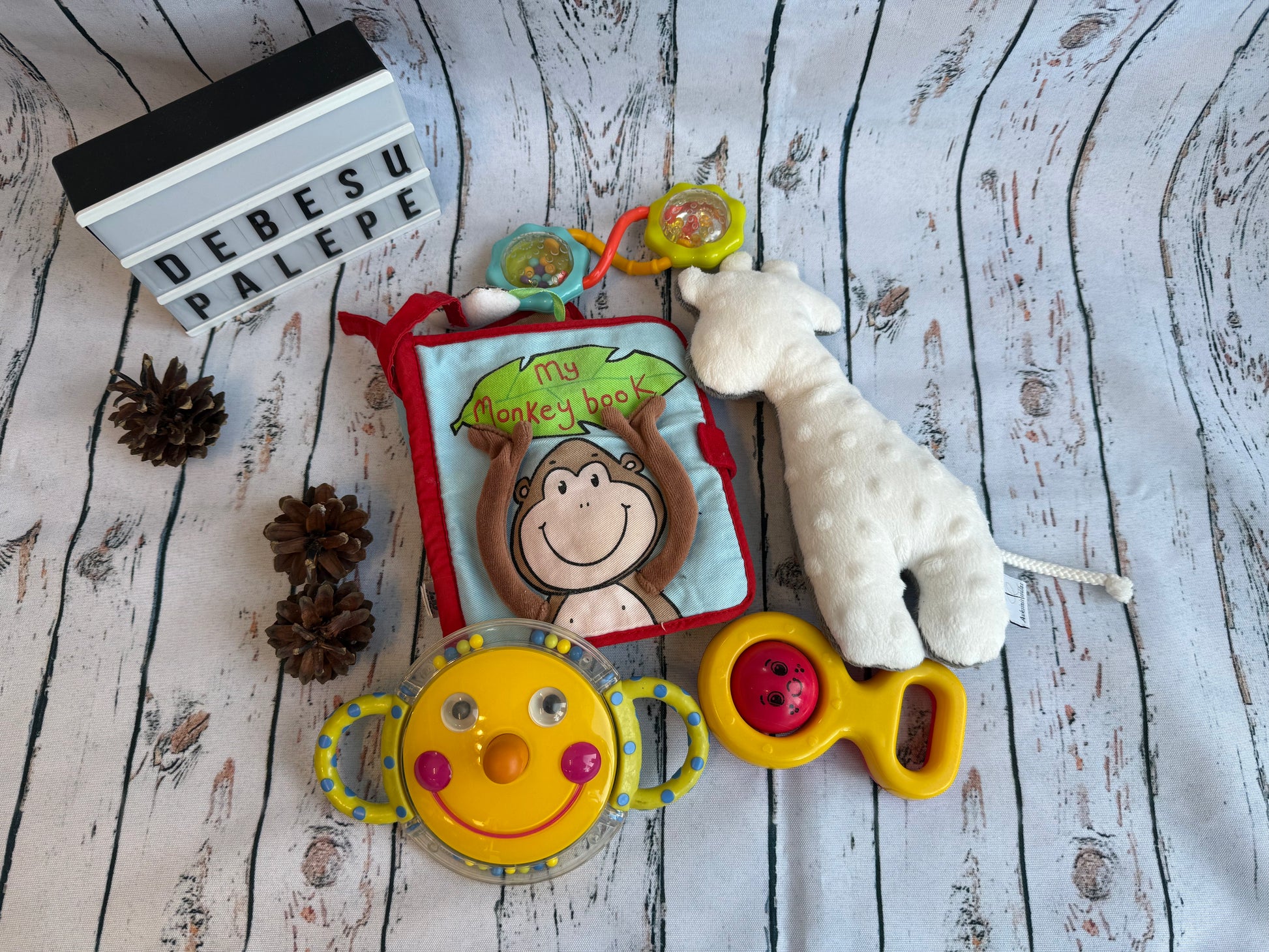 Švelnus, spalvotas ir lavinantis — šis naudotų, bet puikios būklės žaislų rinkinys sukurtas patiems smalsiausiems mažyliams!