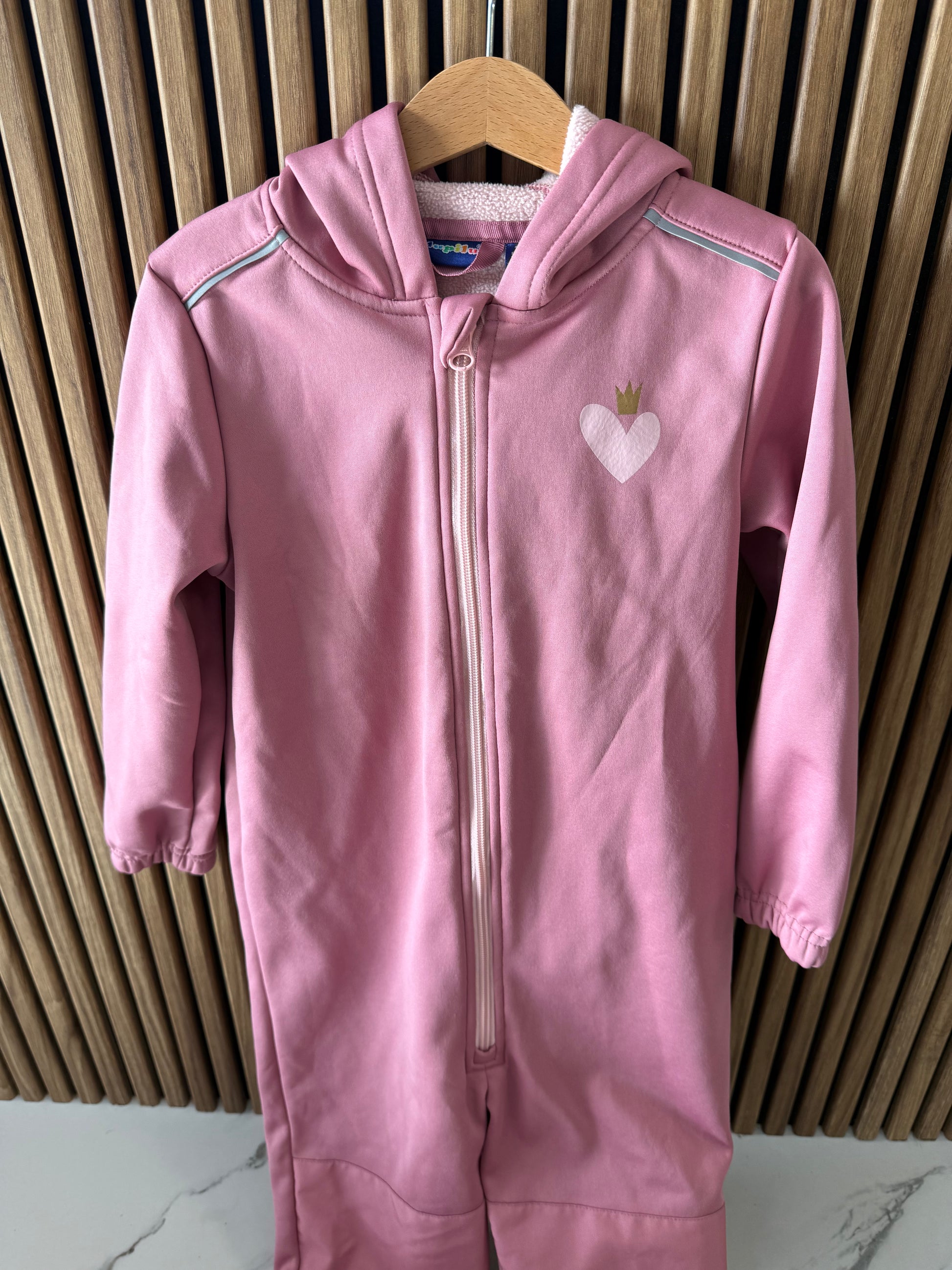 Kombinezonas saugo nuo vėjo ir lengvo lietaus, todėl mažylis gali patogiai žaisti lauke, keliauti ar tyrinėti pasaulį bet kokiomis oro sąlygomis. Patogus užsegimas leidžia lengvai aprengti ir nurengti vaiką.