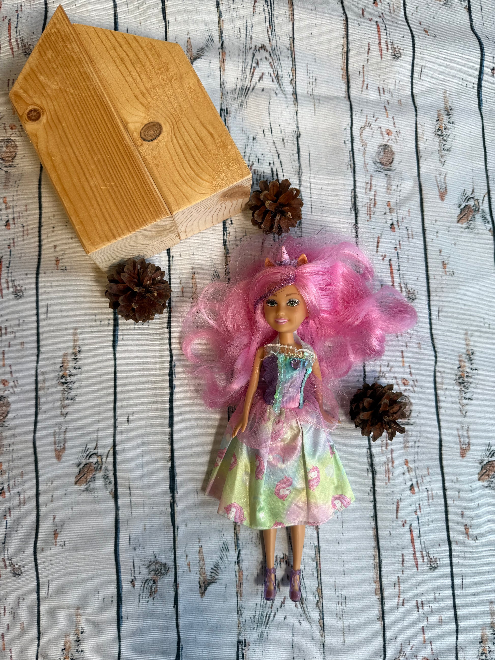 👗 Lėlė yra naudota, tačiau puikios būklės ir puikiai tinka žaidimams.