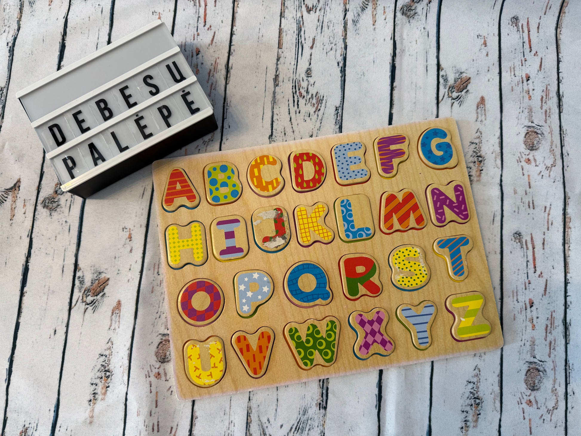 Spalvinga medinė abėcėlės dėlionė su visomis raidėmis nuo A iki Z – pirmiesiems žingsniams į raidžių pasaulį ✨