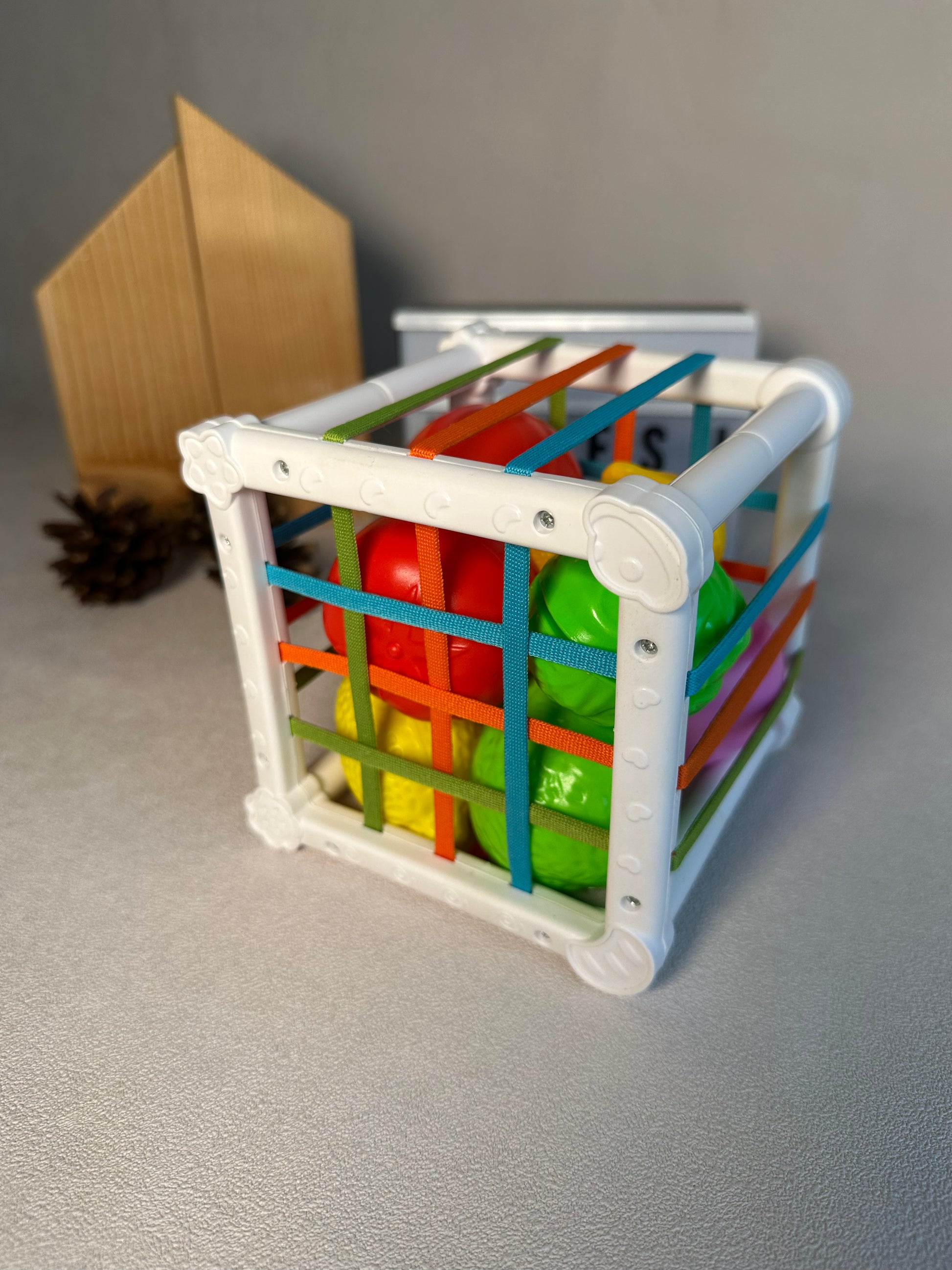 🧺 Sensorinis kubas su vaisių ir daržovių rinkiniu (nuo 12 mėn.)