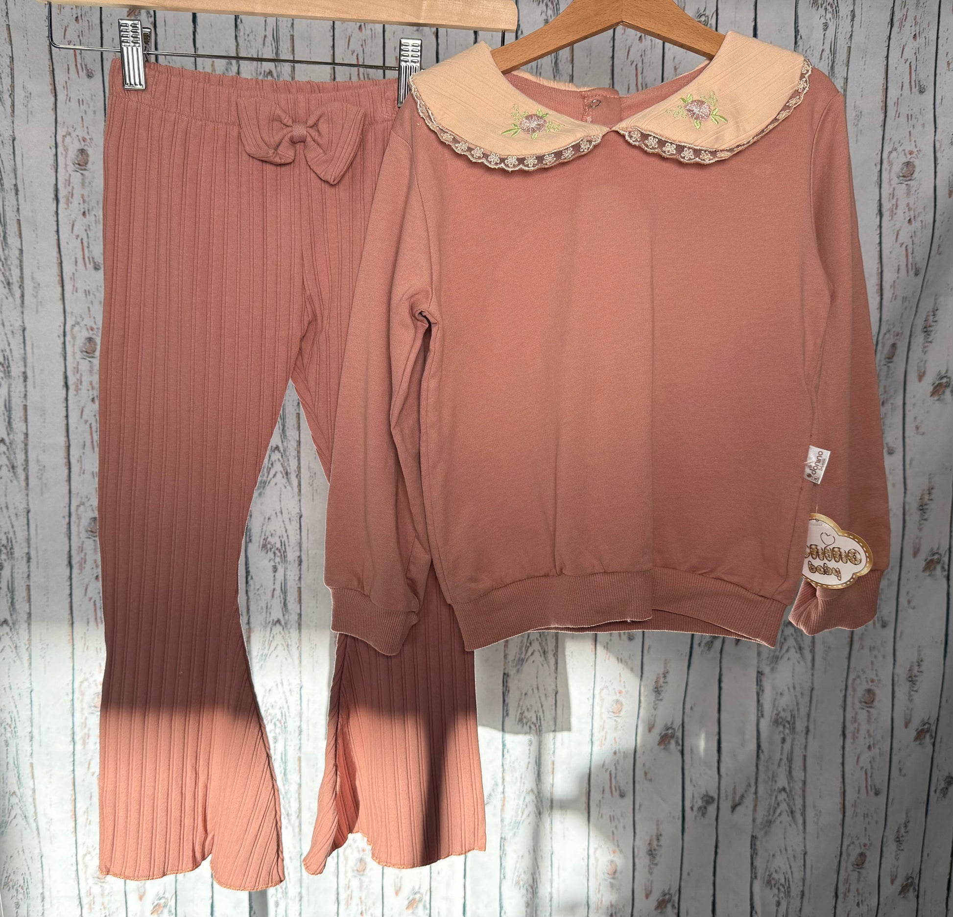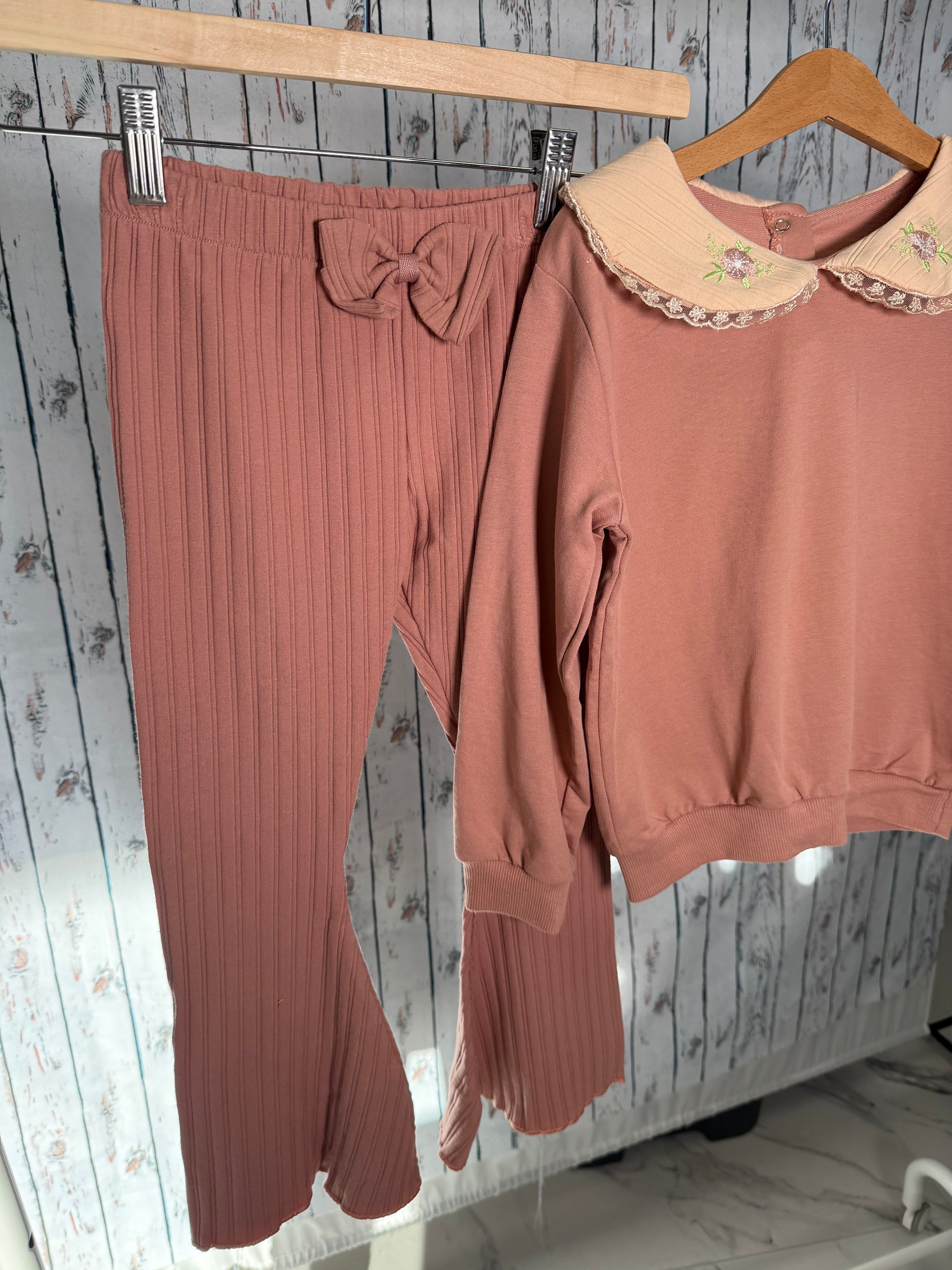 Patogus, švelnus ir kasdienai pritaikytas megztuko ir kelnių komplektas. Nevaržantis kirpimas suteikia laisvę judėti, o minimalistinis dizainas leidžia lengvai derinti su kitais drabužiais.