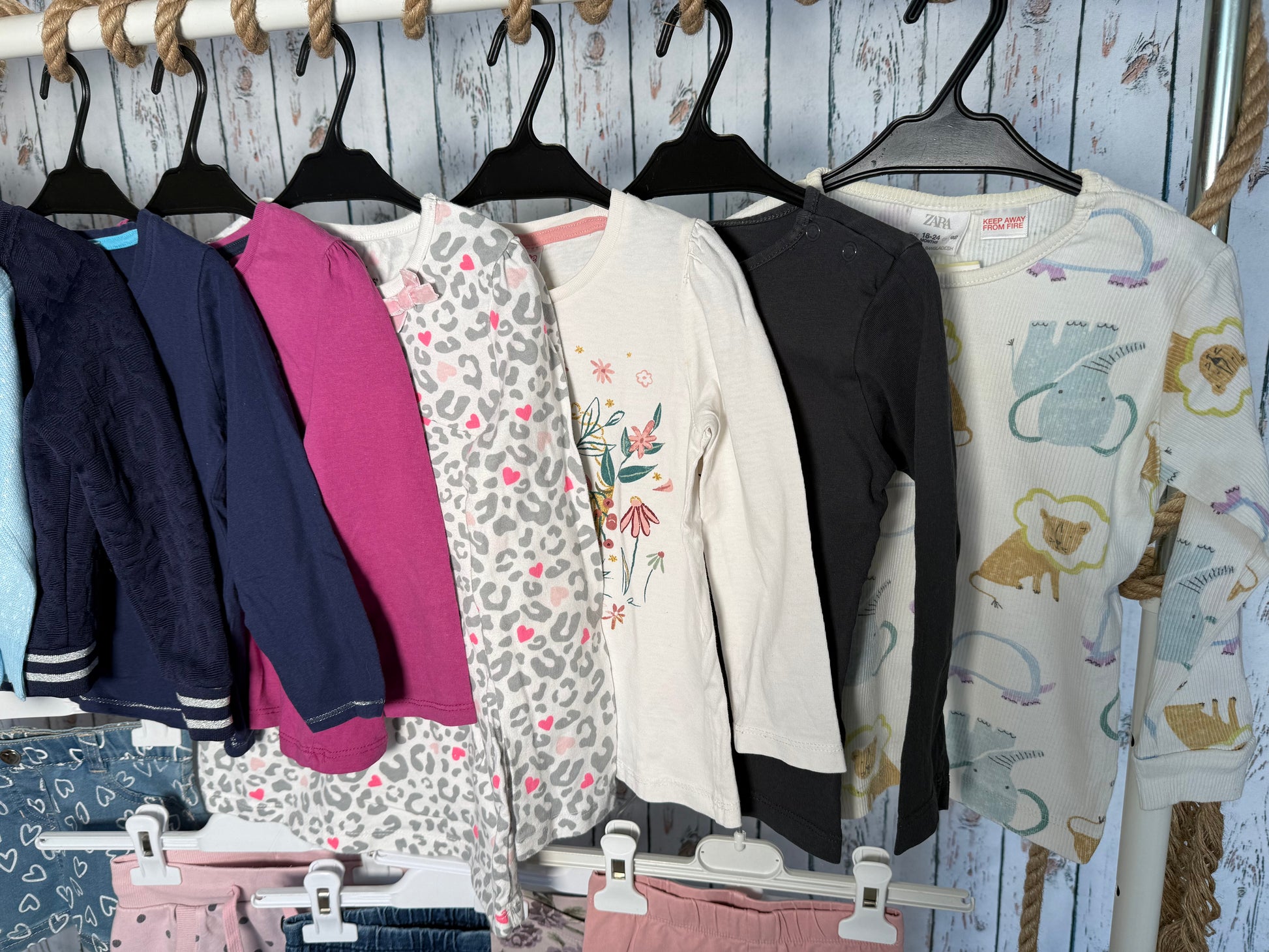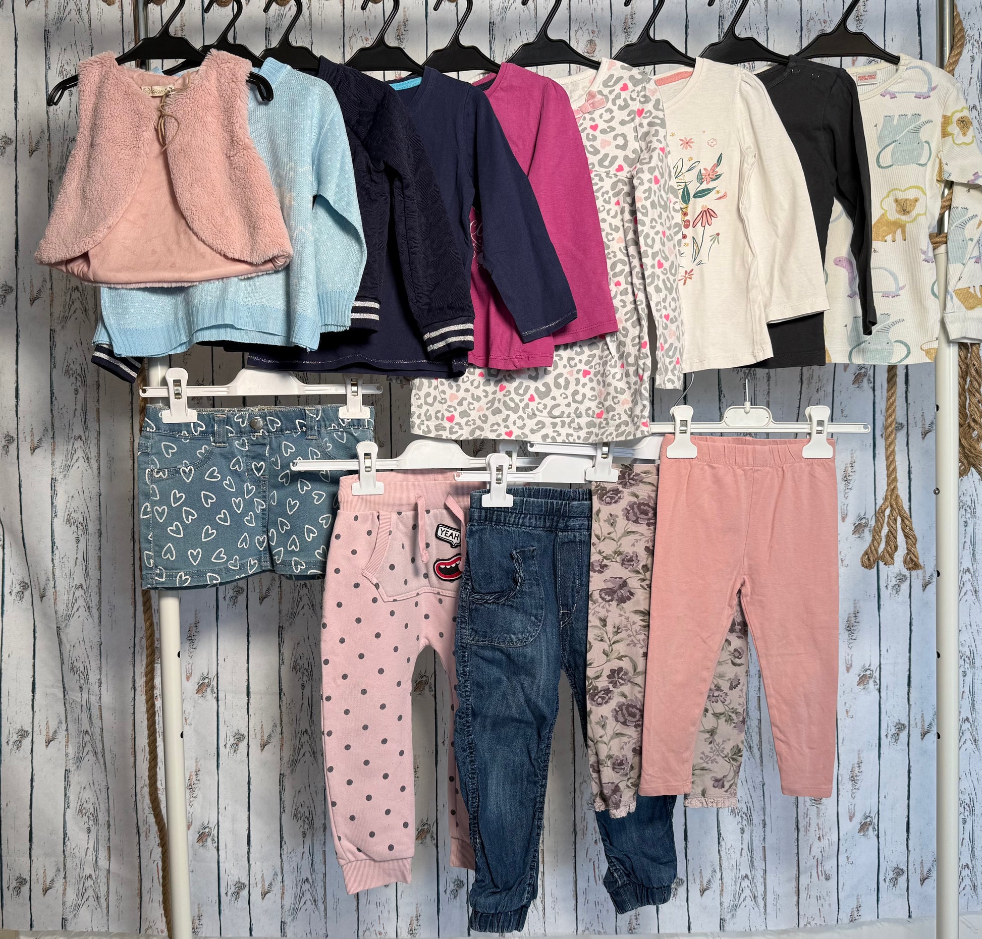 Visi drabužėliai yra naudoti, tačiau geros būklės – išskalbti, prižiūrėti ir pasiruošę naujam gyvenimui! Prieš dėvint viską rekomenduojama dar kartą išskalbti 🧺